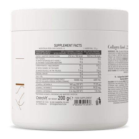 Vsebuje kompleks treh vitaminov – OstroVit Collagen Kissel je vir ribjega kolagena, a tudi pomembnih mikrohranil, kot so vitamin A, vitamin C ali vitamin E.